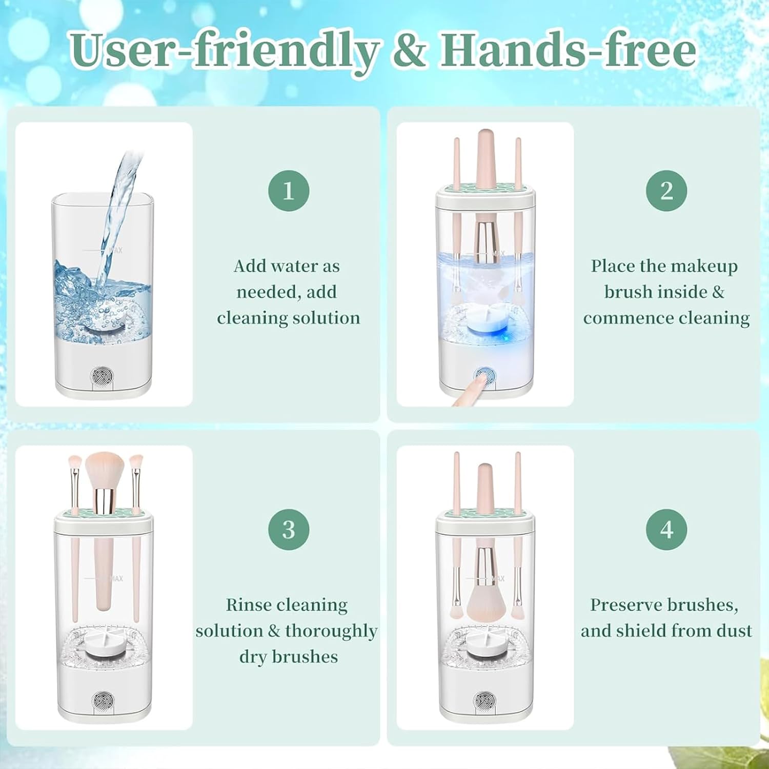 Deep, Professional Cleaning – Powerful motor removes makeup, oil, and residue from brush bristles to help prevent skin issues and keep your makeup fresh.