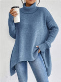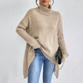 Irregular Turtleneck Sweater Winter Loose Long Sleeve Knitted Tops Leisure Warm Pullover Sweater Women's Clothing