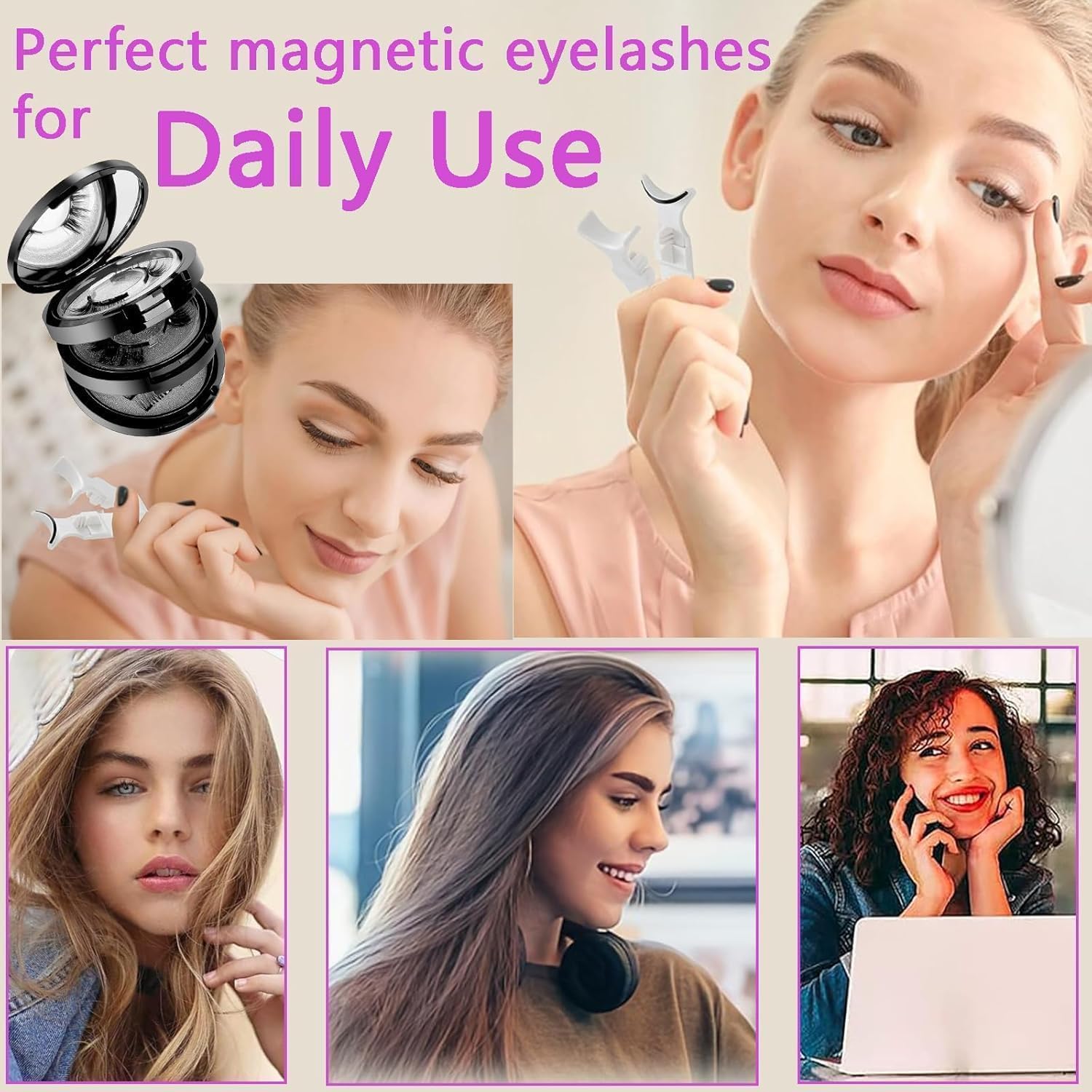 Handmade Magnetic Eyelashes – Crafted from premium synthetic fibers for a soft, natural look that enhances eye shape and brightness.