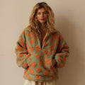 Winter Flowers Lambskin Sweatshirt With Big Pocket Casual Loose Zip-up Lapel Pullover Top Women's Clothing