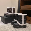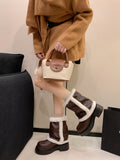 Women's Winter Faux Fur Lined Short Boots, Fashion Thick Bottom Ankle Booties With Warm Plush Trim For Casual Daily Wear